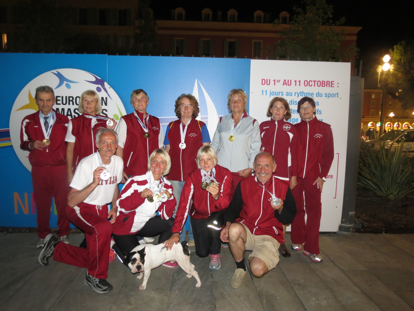Esam sveiki un veseli atgriezušies mājās, bet piedzīvotais vēl ilgi paliks atmiņā un fotogrāfijās. Paldies Vladimiram un Jurim par video materiāliem un neaizmirstamajiem foto. Spēļu laikā piedzīvojām vētru – krusu, lietu, zibeni, virpuļviesuli vairāku stundu garumā. No kalniem plūstošais ūdens pārvērta ielas mutuļojošās upēs, aizrāva līdzi mašīnas, cilvēkus, mūra sētas, kokus, dubļus, applūdināja mājas, viesnīcas, tuneļus, sabojāja ceļus. Vietējie šo vētru nodēvēja par pasaules galu – bojā gāja 20 cilvēki. Mēs dzīvojām pilsētā Antibes (25 km no Nicas) un vētra mūsu pilsētā neradīja postījumus. Ceļš uz Nicu bija bojāts, taču veiksmīgi nokļuvām uz sacensību stadionu Nicā. Sacensību dienas pavadījām stadionā, bet vakarā plkst. 19.00 devāmies uz Nicas pludmali (10 km), kur notika iepriekšējās dienas uzvarētāju apbalvošana. Mājās atgriezāmies tikai pirms plkst. 22.00. Izmantojām vienu brīvdienu pēc sacensībām, lai redzētu Monako (kazino, kaktusu dārzu, karaļa pili, F-1 trasi), apskatītu Nicas vēsturisko centru, un prombraucot apmeklējām kanjonu un vecāko Francijas ciemu. Esam ļoti apmierināti ar startu un redzēto svešajā zemē. Vēl viens izturības sasniegums- brauciens mājup četrdemit divu stundu garumā, ceļojumā nobraucot sešus tūkstošus km.