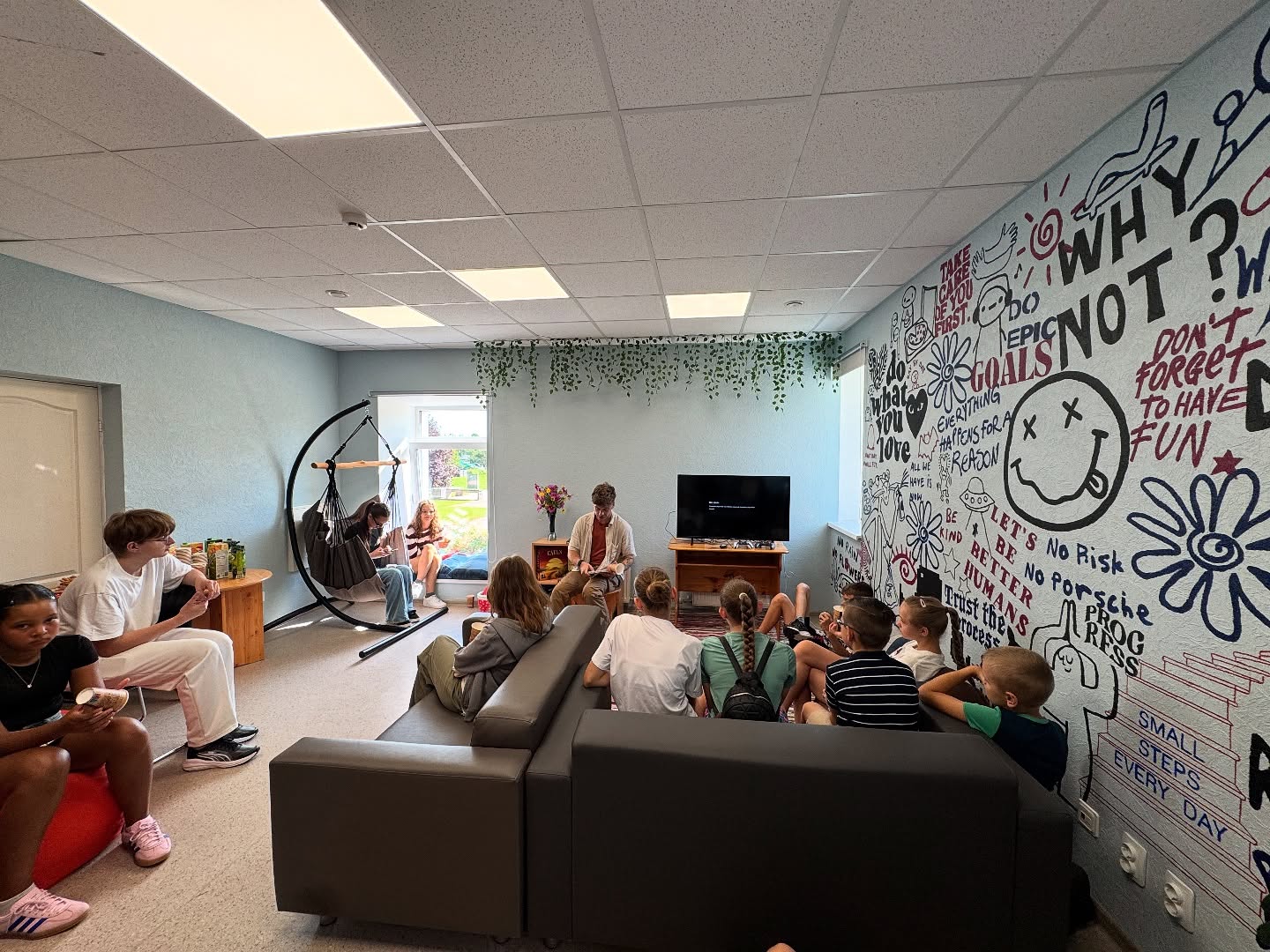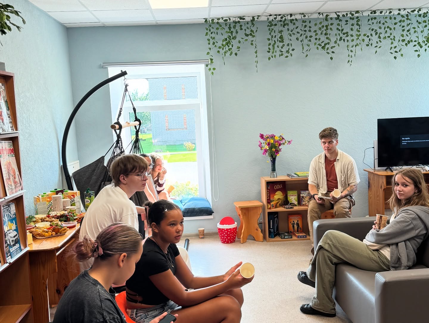 Īpašs paldies jauniešiem, kas krāsoja sienas un veidoja sienas gleznojumu, kā arī jauniešiem, kuri auda paklājus un darināja spilvenus. Šis darbs padarīja telpu īpaši siltu un radošu.
